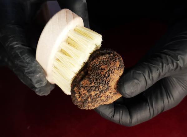 Sollten Trüffel nicht sauber sein, dann kann man sie mit einer feuchten Gemüsebürste putzen.
