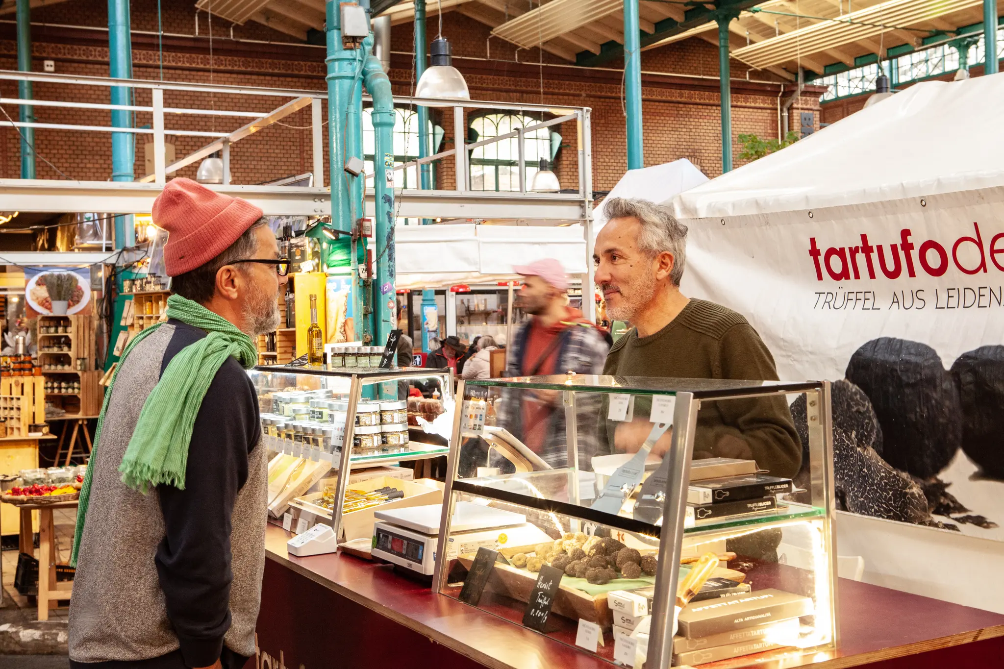 Von Oktober bis März kann man erntefrische Trüffel in der Markthalle Neun in Berlin-Kreuzberg kaufen.